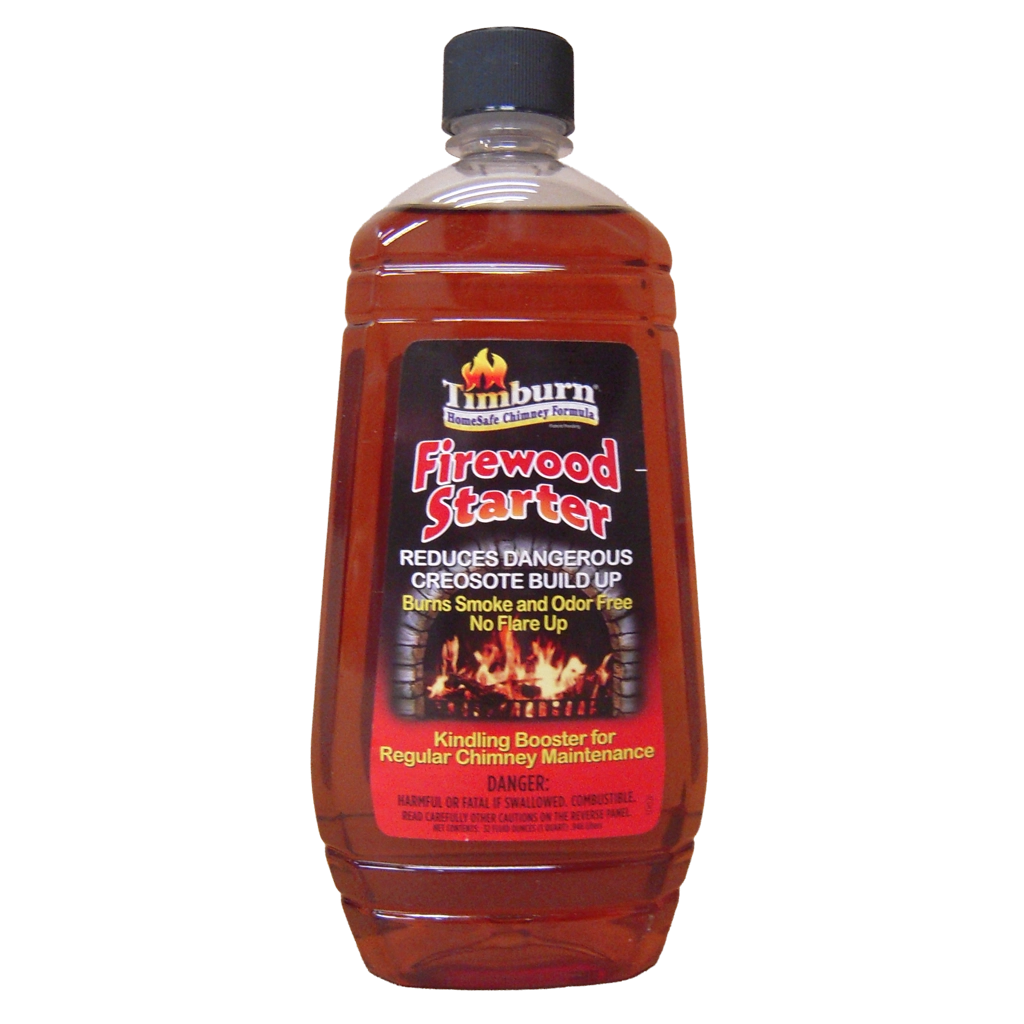 A few ounces of Timburn regular chimney maintenance formula will wick into any dry combustible kindling or tinder to produce a roaring fire in minutes while it reduces dangerous chimney deposits. Only 1 to 3 ounces are needed to start nearly any wood fire making the 32 ounce bottle a great value. Timburn, when used with the Kindl-Stone, produces a high, hot, flame for 8 to 10 minutes using only 1.25 ounces of fluid.