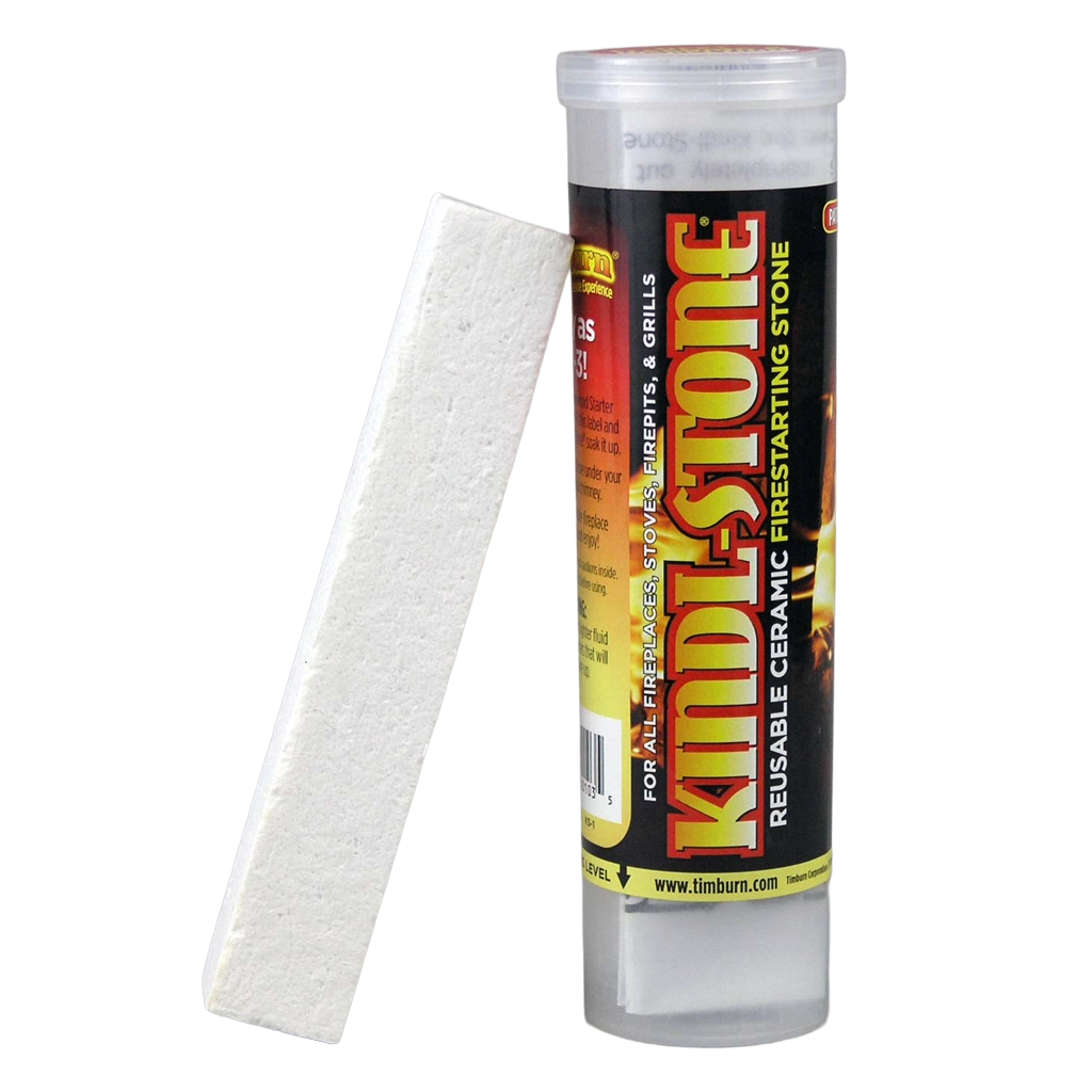 Timburn Kindl-Stone is a porous ceramic block that acts as a wick for Timburn fire starter oils. The Kindl-Stone delivers a high, hot flame for 8 to 10 minutes using only 1.25 ounces of Timburn liquid.